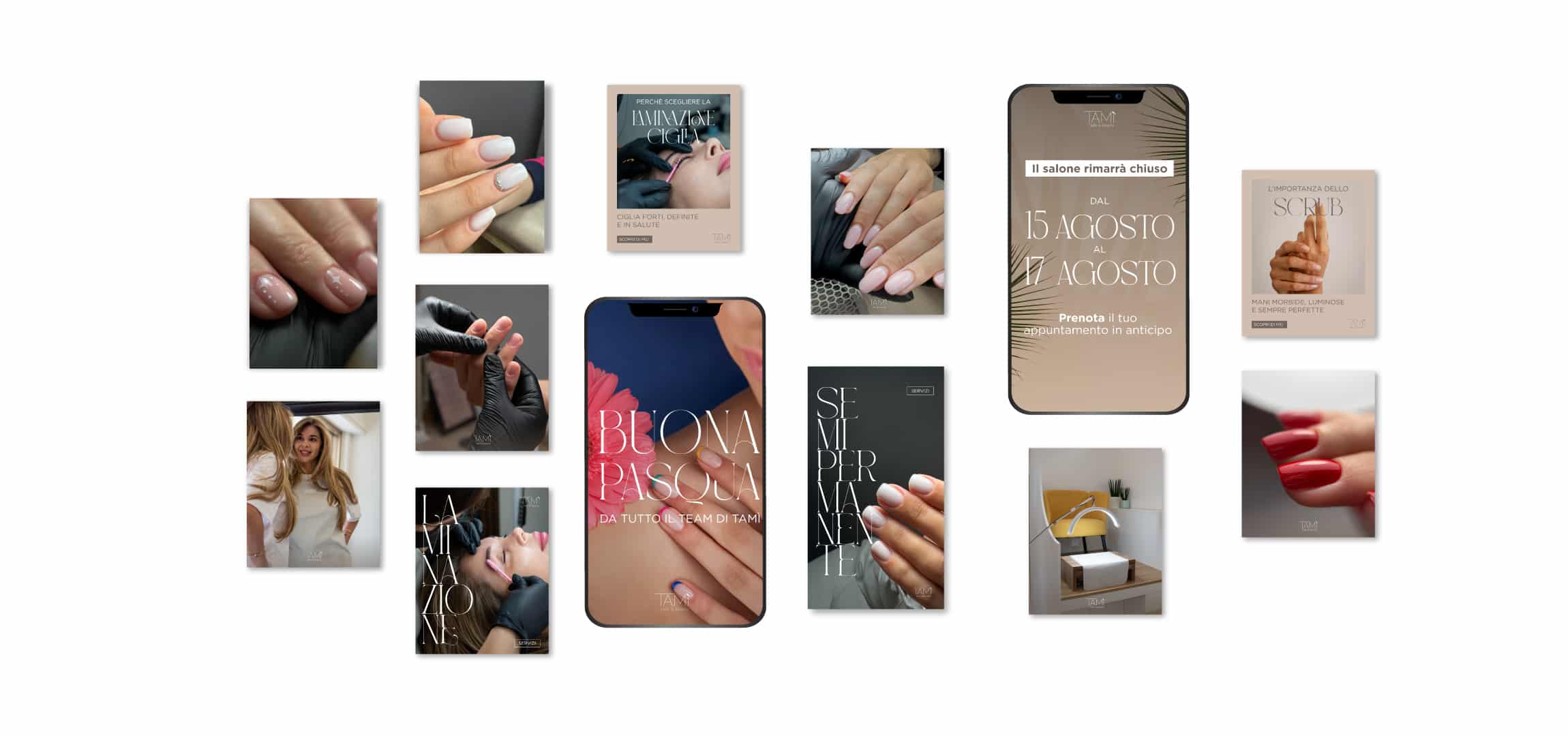 Tamì Nail & Beauty oggi comunica con coerenza, stile e qualità attraverso i social. L’identità del salone si riflette in ogni contenuto: dalle immagini al copy, dalla palette visiva al tono di voce. Una strategia pensata per aumentare la percezione del brand e rafforzare il legame con la community.